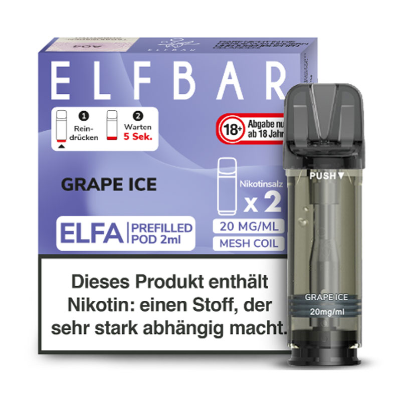 Grape Ice 20mg Elf Bar Elfa Pod (2 Stück) – Eisgekühlter Traubengenuss für dein Elfa Pod System